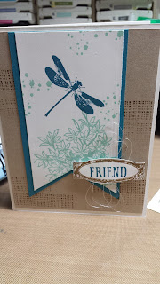 Here is a card that we did at my workshop last week. I just love the Dragonfly. I have done a step by step video below. Thanks for stopping by If you have not joined my Face book page make sure you do. I post daily videos and cards. (bonnies crative place)